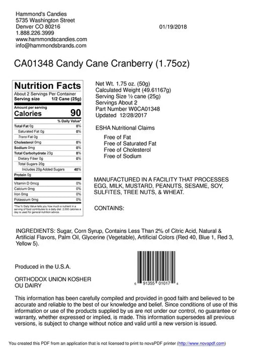 Hand-Spun Jumbo Candy Cane - Cranberry - 1.75 oz