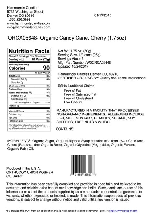 Organic Hand-Spun Jumbo Candy Cane - Cherry - 1.75 oz