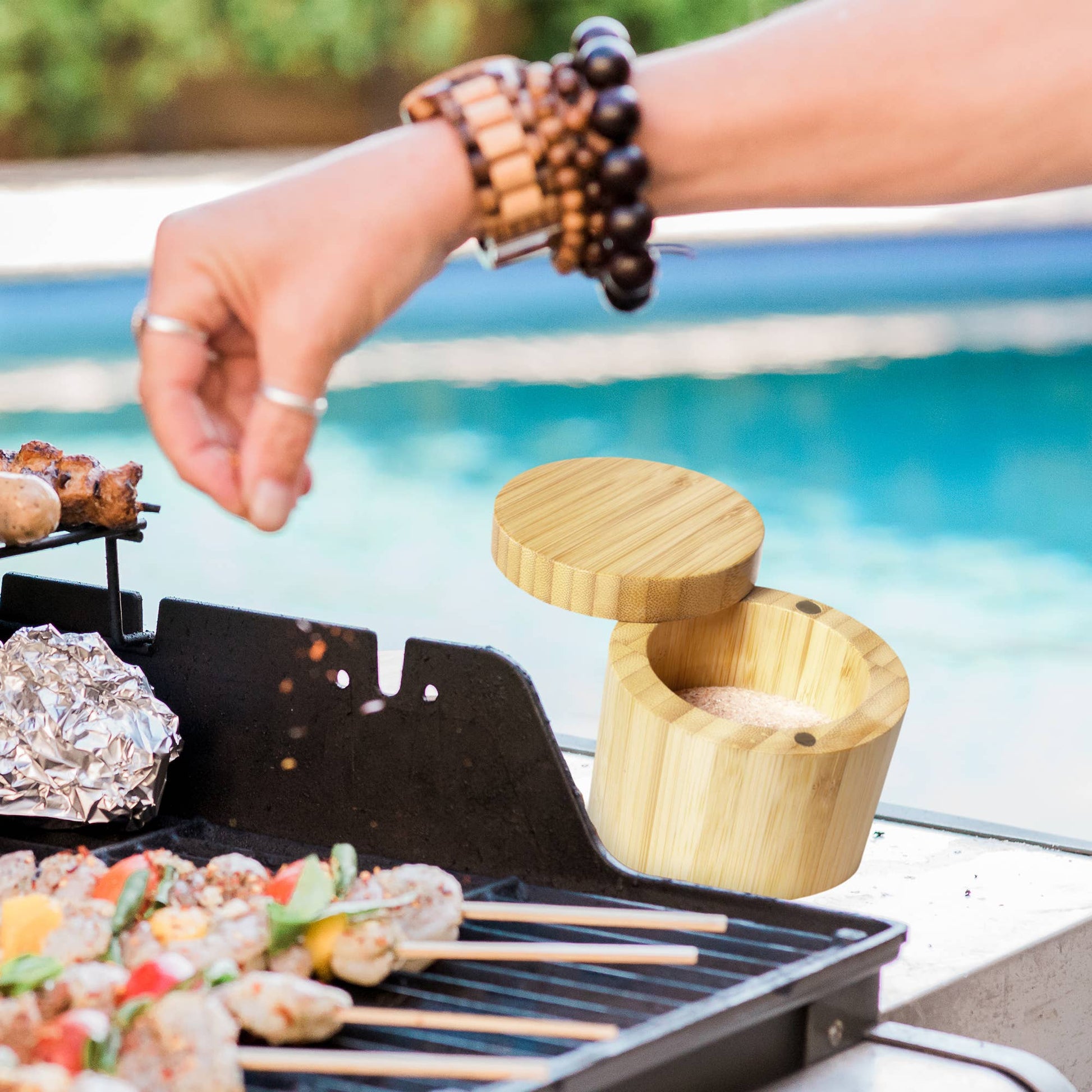Angled Bamboo Salt Cellar Storage Box with Swivel Lid