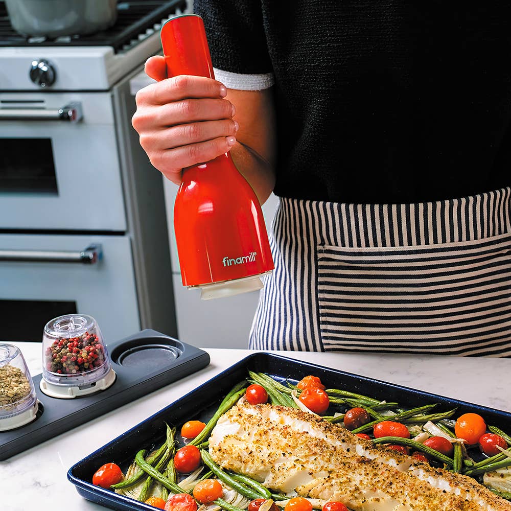 The best way to grind whole spices of all shapes and sizes! Mill whole spices, from petite poppy seeds to plus-size peppercorns Operates with just one hand at the push of a button Swappable grinding pods keep flavors distinct Comes with 2 Pro Plus FinaPods. Wide-mouth opening for easy spice refills Built to last with durable ceramic grinding mechanism Sleek, minimalist design looks great on your kitchen counter and dining room table Free of calories and packed with nutritional benefits, spices are your gateway to delicious cooking. But the volatile oils that give spices their vivid flavors and health benefits begin to degrade the minute those spices are ground.